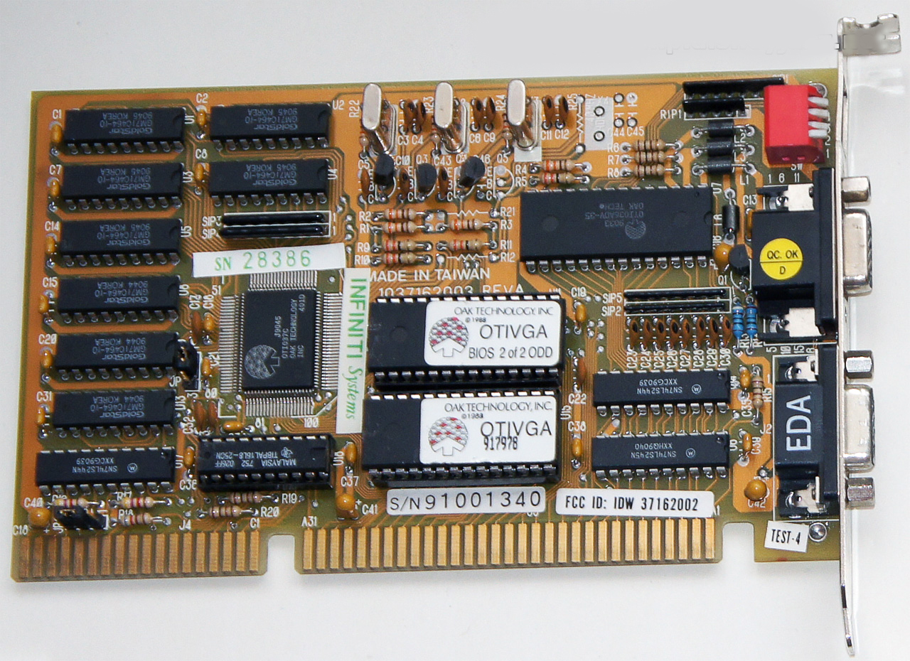 Видеокарта EGA-VGA ISA 8 bit Далее появились настоящие трехмерные, с объектами из полигонов, игры. Соответственно появились и видеокарты обрабатывающие 3D изображение (не путайте его с тем изображением, которое вы видите в кинотеатре при просмотре фильма в стерео-3D). Первые видеокарты были вообще дополнительной картой к обычной 2D карте и вставлялись в соседний слот. Потом появились видеокарты способные обрабатывать и 2D и 3D.