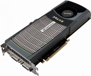 Разогнаныйтрех-слотовый вариант Radeon HD7970 - существуют версии, где вентилятор немного выпирает занимая четвертый слот, а также в комплекте идёт небольшая телескопическая подпорка.